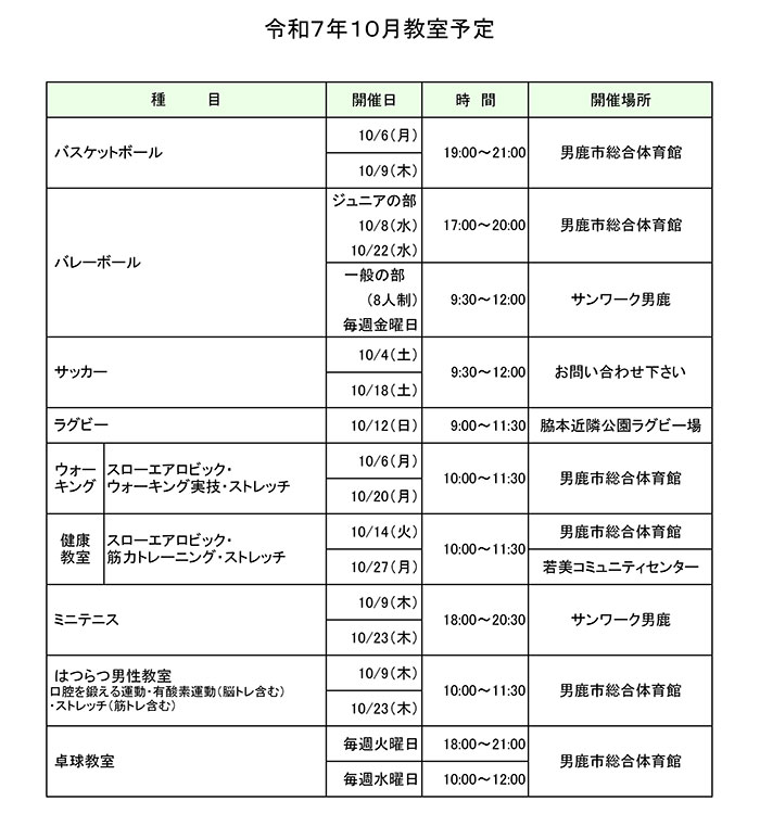 男鹿市総合型地域スポーツクラブ 教室予定 |